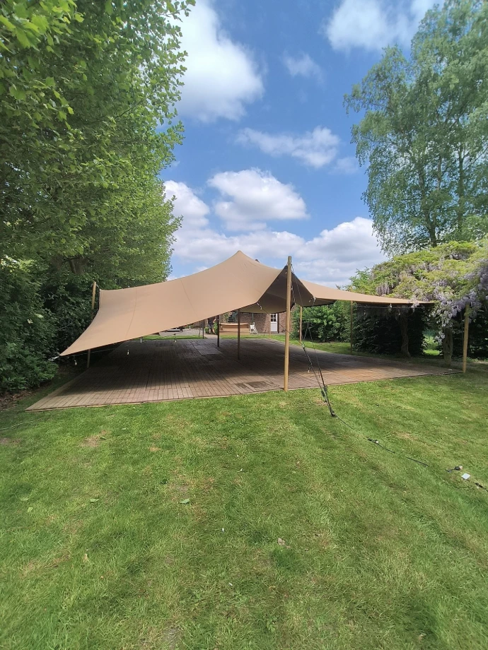Een stretchtent, door ons geplaatst en weer afgebouwd.